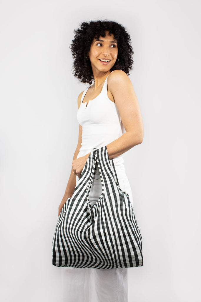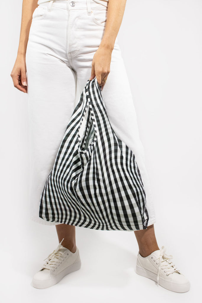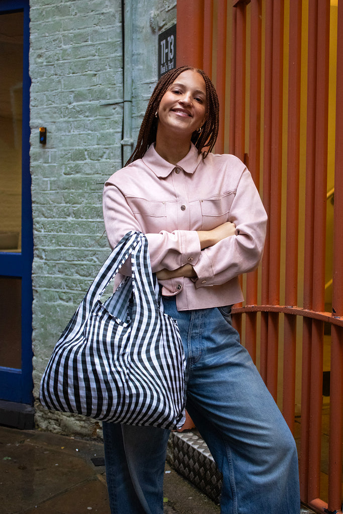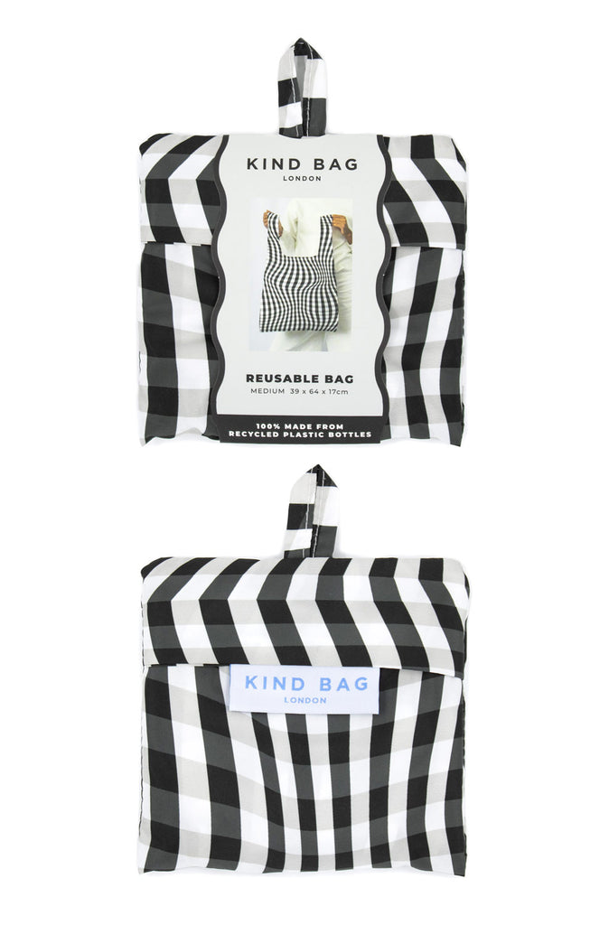 As the original Kind Bag product, our Reusable Bag is your go-to accessory for everyday use. Made from 100% recycled materials, it is lightweight yet capable of carrying up to 20kg. The built-in pouch allows you to fold the bag into a compact size for easy storage in your handbag or backpack. Ideal for grocery shopping, errands, and travel, this bag combines practicality with sustainability, ensuring you're never without a reusable bag.
