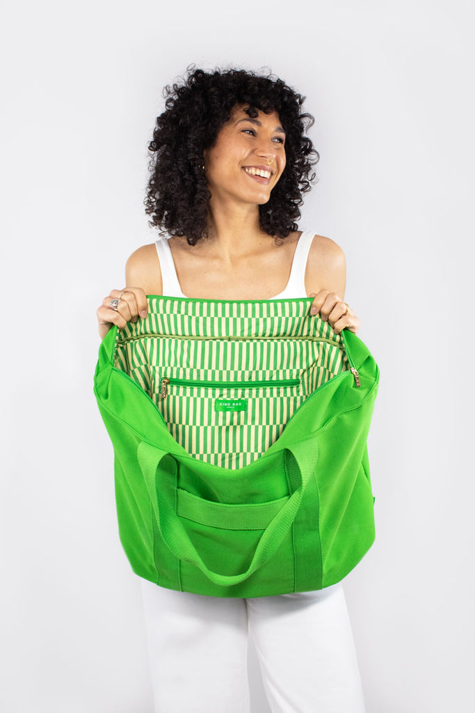 100% recycled material in all Kind Bags eliminates the need for single-use plastic bags. Vegan and cruelty free as well as high-quality, premium, strong material that is water-resistant and lightweight.
