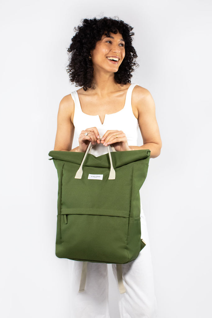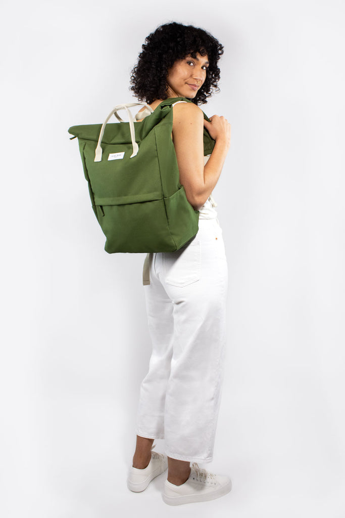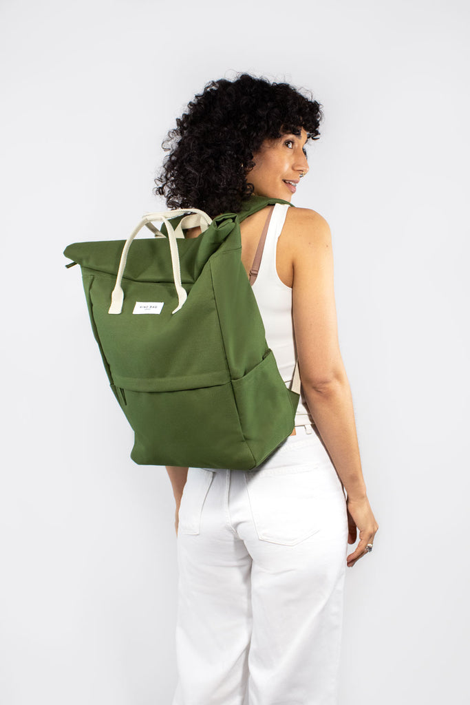 Your spacious, sustainable carry-all. Crafted from recycled, water-resistant fabric, the Large Hackney Backpack combines modern design with generous capacity. With a roll-top closure, padded laptop sleeve, comfy straps, and secure pockets, it’s the perfect conscious choice for work, travel, and everyday adventures.