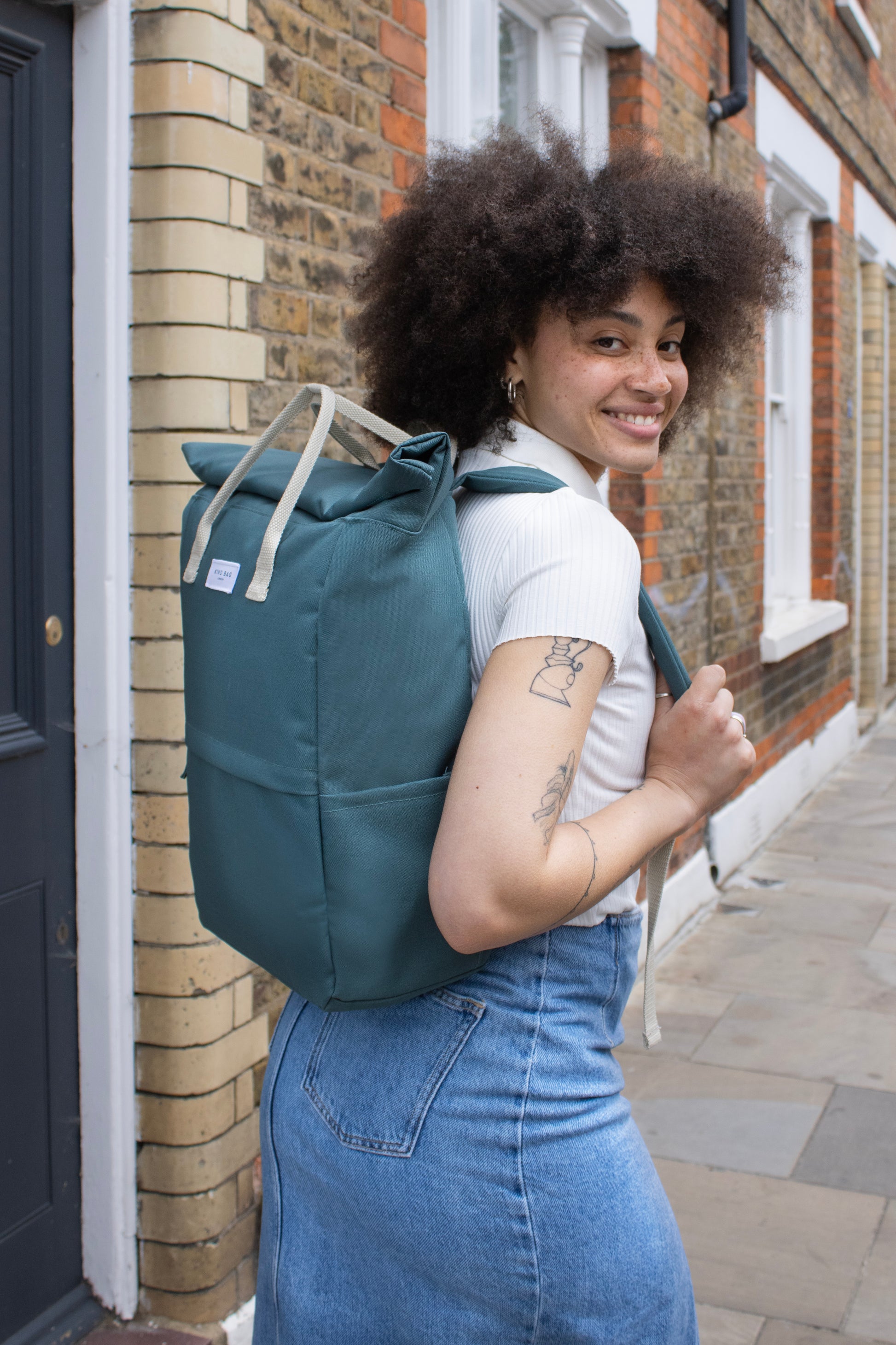 Your spacious, sustainable carry-all. Crafted from recycled, water-resistant fabric, the Large Hackney Backpack combines modern design with generous capacity. With a roll-top closure, padded laptop sleeve, comfy straps, and secure pockets, it’s the perfect conscious choice for work, travel, and everyday adventures.