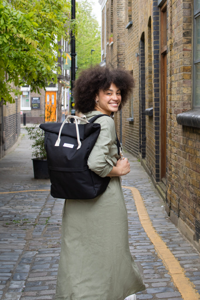 Hackney Backpack | Medium - 33 (+12cm roll top) x 25.5 x 12.5cm. Capacity of 10 litres, 14 litres with roll top