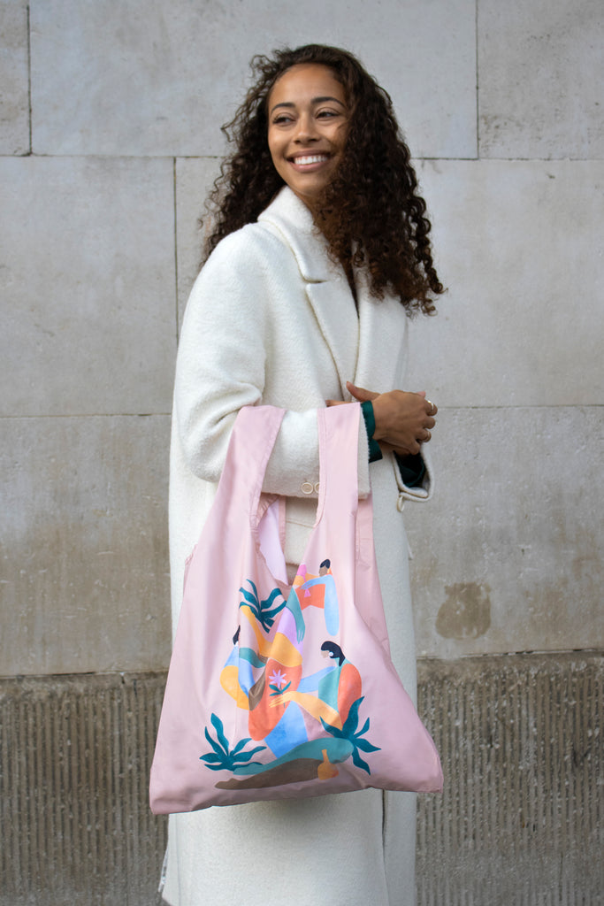 Embrace sun-soaked style with Maggie Stephenson’s A Summer Afternoon. As the original Kind Bag product, our Reusable Bag is your go-to accessory for everyday use. Made from 100% recycled materials, it is lightweight yet capable of carrying up to 20kg. The built-in pouch allows you to fold the bag into a compact size for easy storage in your handbag or backpack. Ideal for grocery shopping, errands, and travel, this bag combines practicality with sustainability, ensuring you're never without a reusable bag.
