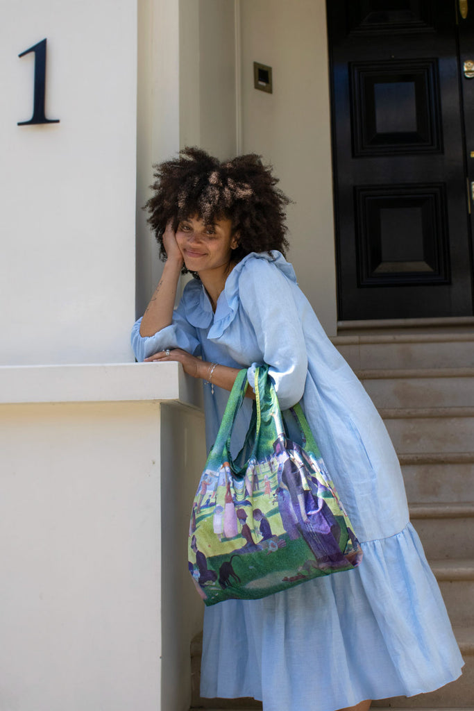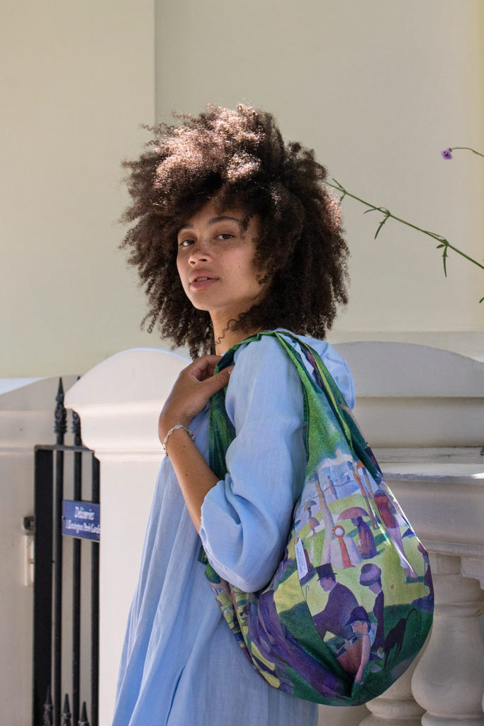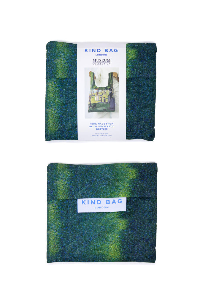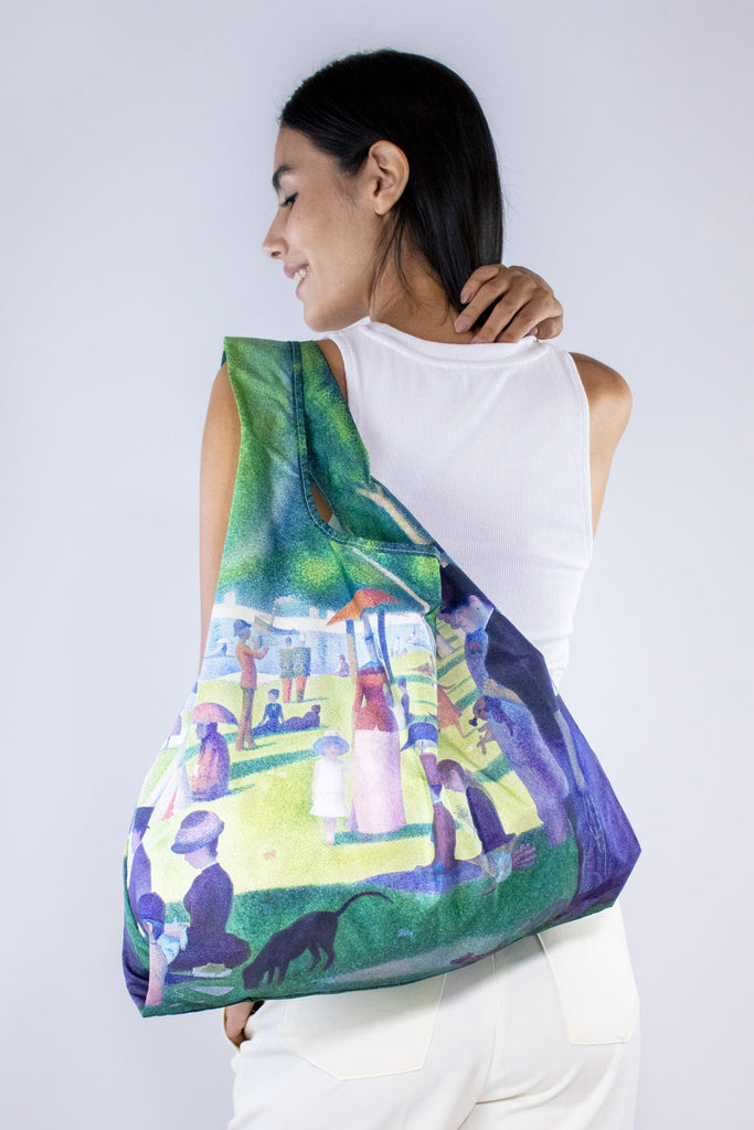 Carry a touch of Parisian elegance with Seurat’s A Sunday Afternoon on La Grande Jatte. As the original Kind Bag product, our Reusable Bag is your go-to accessory for everyday use. Made from 100% recycled materials, it is lightweight yet capable of carrying up to 20kg. The built-in pouch allows you to fold the bag into a compact size for easy storage in your handbag or backpack. Ideal for grocery shopping, errands, and travel, this bag combines practicality with sustainability, ensuring you're never without a reusable bag.