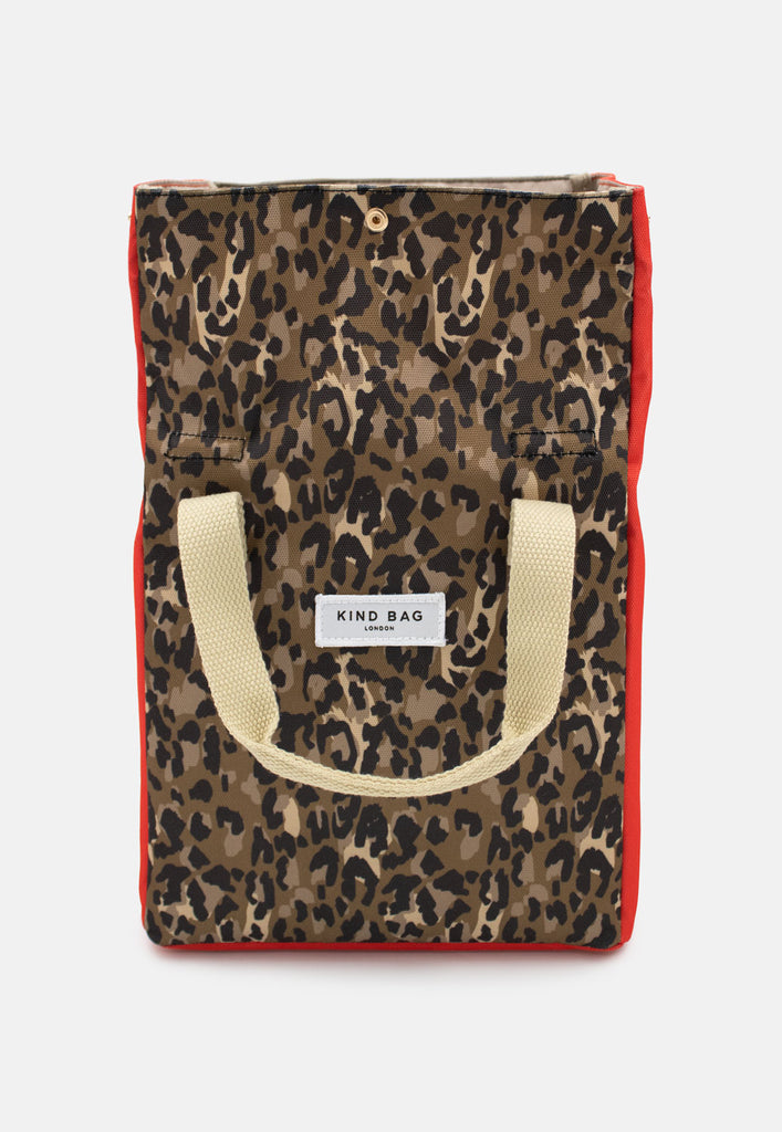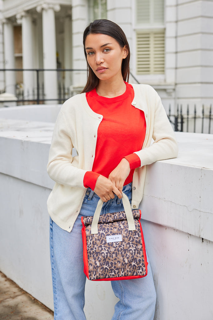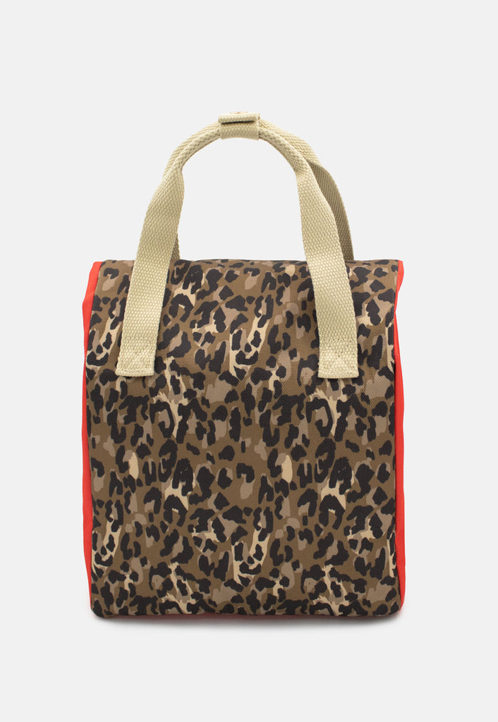 Our Leopard print Lunch Bag makes lunchtime more enjoyable with its stylish design and practical features. Made from 100% recycled materials, it is water-resistant, machine washable, and features multiple pockets for organisation. The magnetic roll top and snap-together handles ensure your lunch stays secure, whether you're heading to work, school, or a picnic.