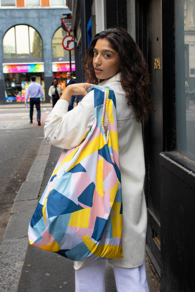 Our Extra Large Reusable Bag is designed for those who need more space. Made from 100% recycled materials, this bag can carry up to 25kg, making it perfect for large shopping trips, picnics, laundry and more. Perfect as a beach bag carrying big towels or as an essential daily errand bag, its durable construction and spacious interior ensure you have enough room for all your belongings while staying environmentally conscious.
