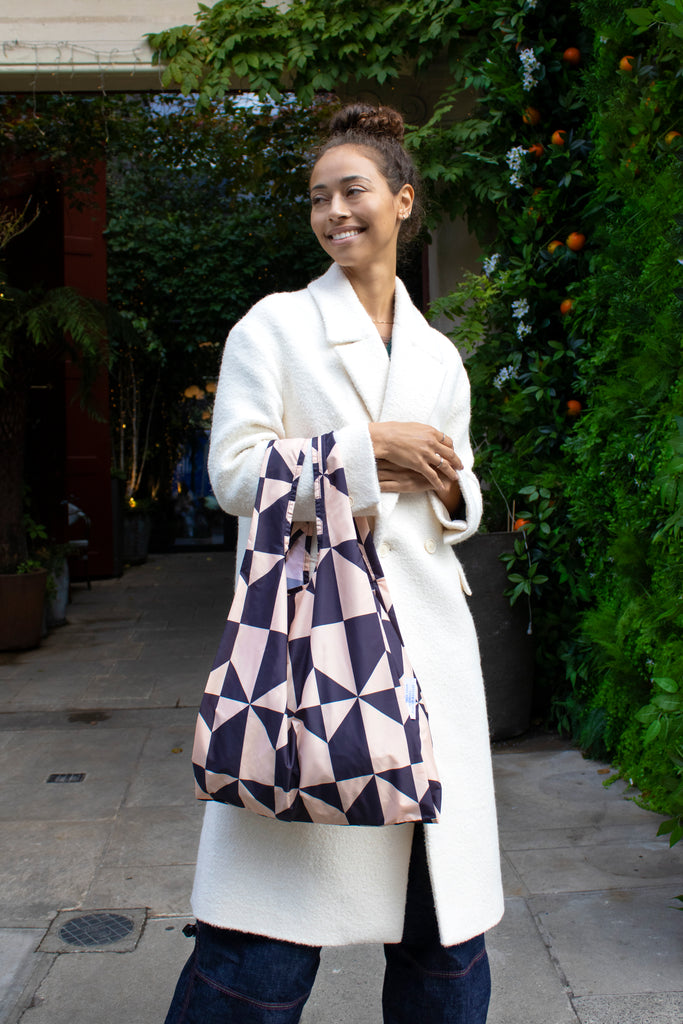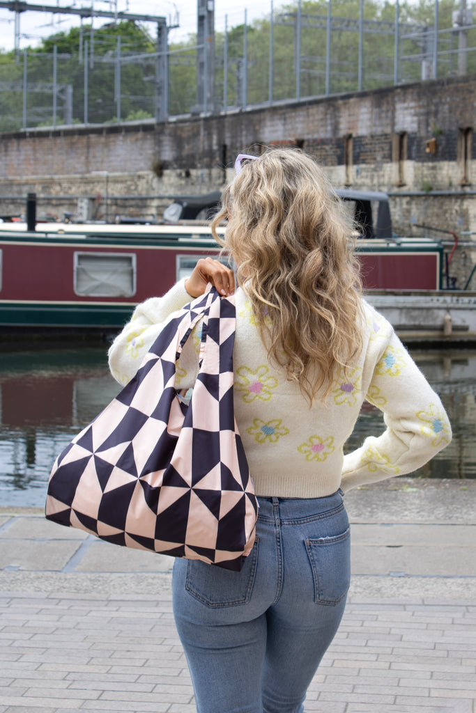 As the original Kind Bag product, our Reusable Bag is your go-to accessory for everyday use. Made from 100% recycled materials, it is lightweight yet capable of carrying up to 20kg. The built-in pouch allows you to fold the bag into a compact size for easy storage in your handbag or backpack. Ideal for grocery shopping, errands, and travel, this bag combines practicality with sustainability, ensuring you're never without a reusable bag.
