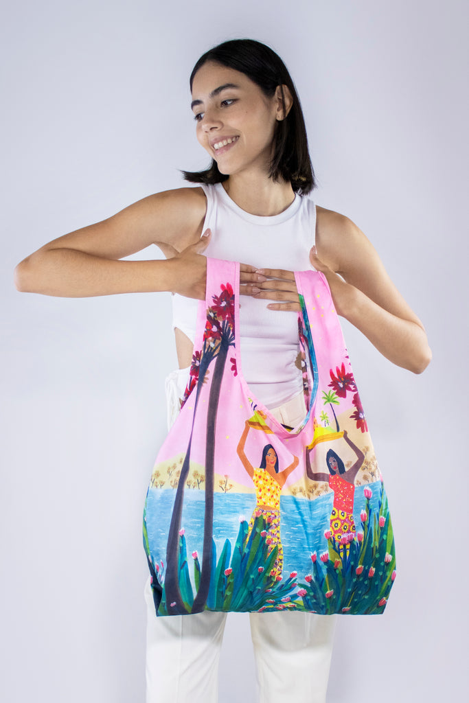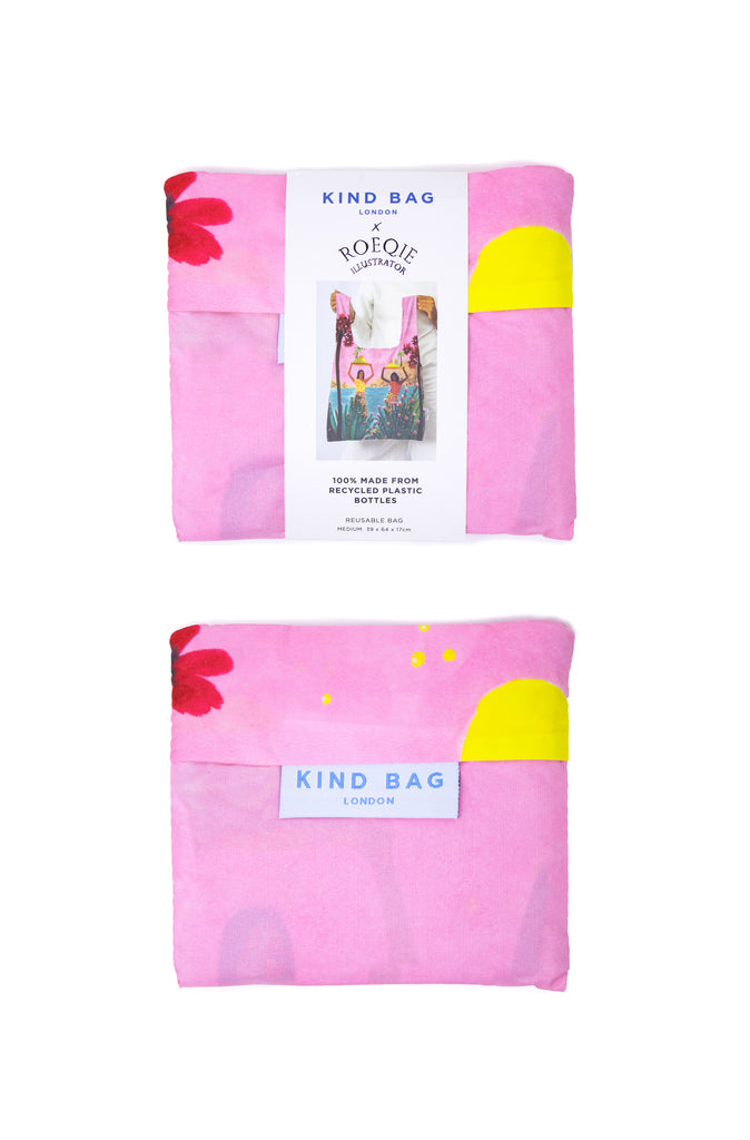 Bring colour and imagination to your everyday with Roeqie’s Two Islands. As the original Kind Bag product, our Reusable Bag is your go-to accessory for everyday use. Made from 100% recycled materials, it is lightweight yet capable of carrying up to 20kg. The built-in pouch allows you to fold the bag into a compact size for easy storage in your handbag or backpack. Ideal for grocery shopping, errands, and travel, this bag combines practicality with sustainability, ensuring you're never without a reusable bag.