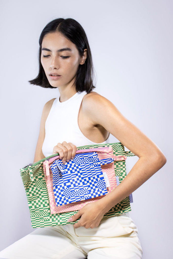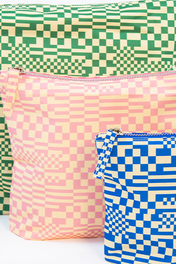 Our set of three Pouches is perfect for organising your essentials. Made from 100% recycled materials, these pouches come in different sizes to store everything from travel essentials to makeup and stationery. They lay flat when not in use, making them easy to pack and carry. Stay organised and eco-friendly with our stylish and versatile Pouches.