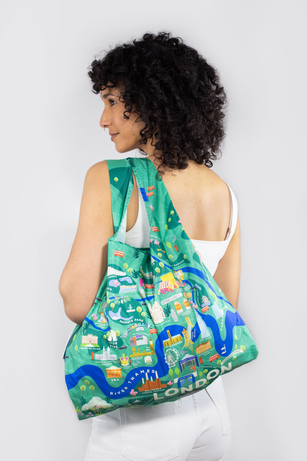 When not in use, the bag folds neatly into its attached built-in pouch, small enough to slip into your pocket or handbag, so you’ll always have a reusable option on hand.