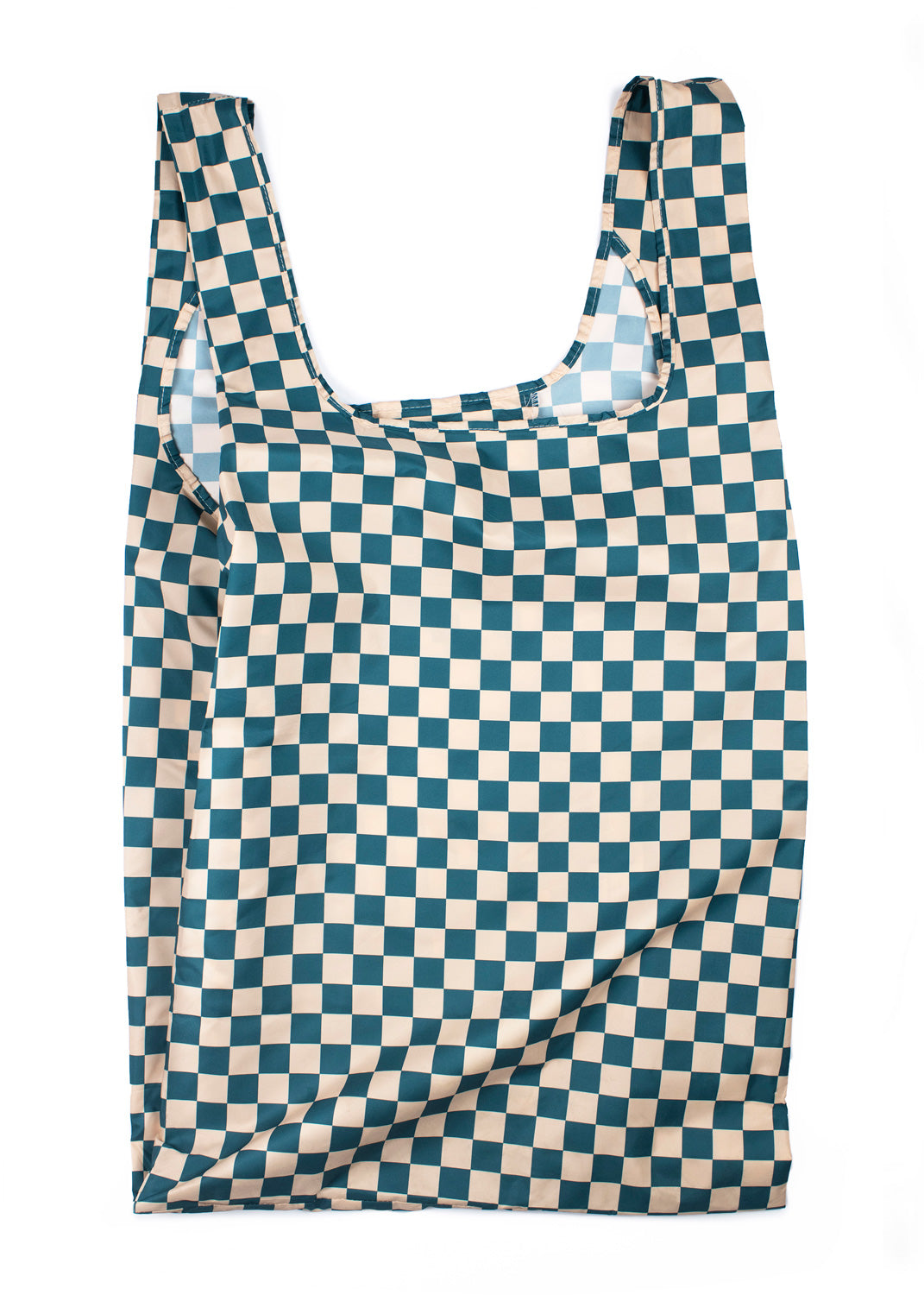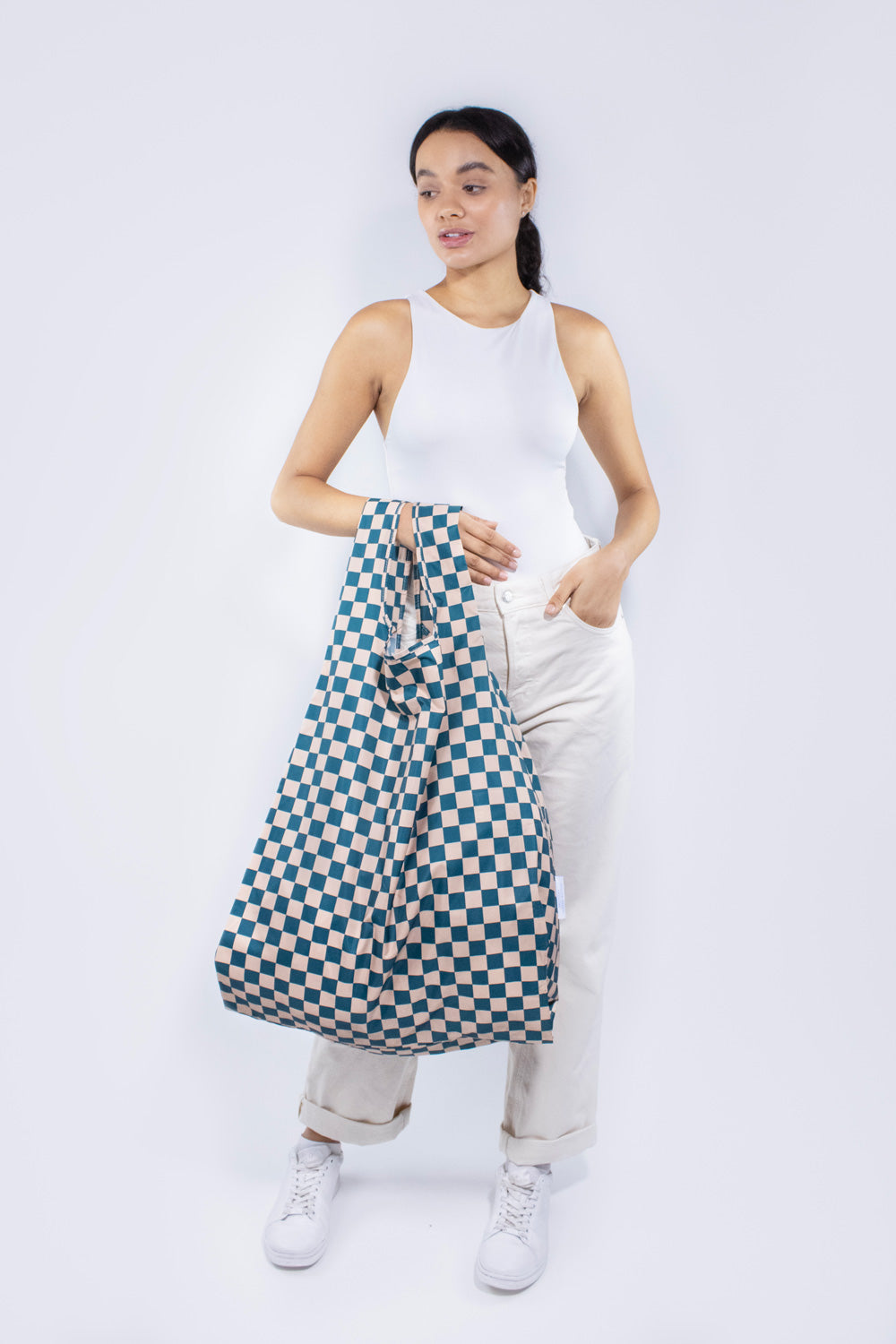 Checkerboard Teal & Beige | Extra Large Reusable Bag