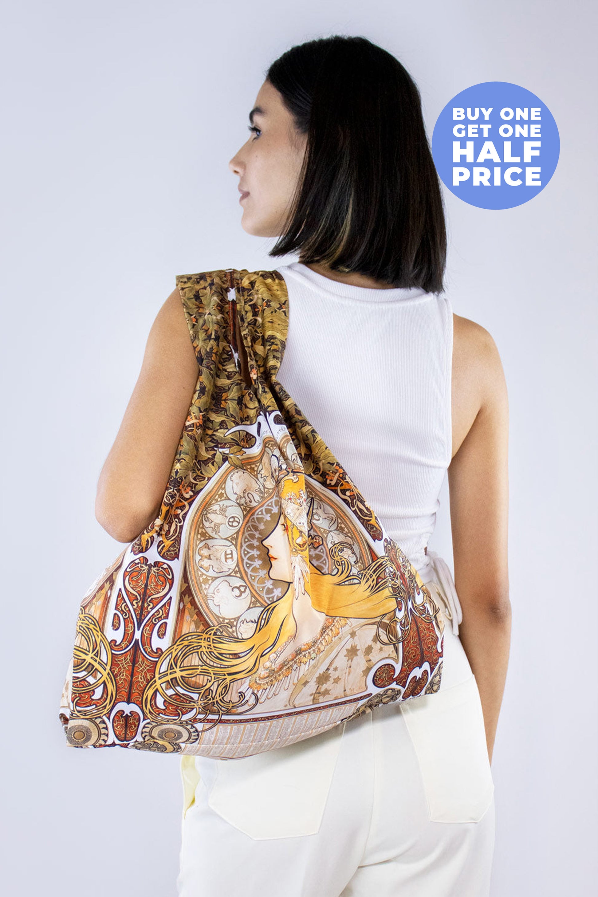 Showcase the beauty of Art Nouveau with Mucha’s Zodiaque. Lightweight, foldable, and durable, this reusable bag turns an everyday essential into a timeless work of art you can carry anywhere.