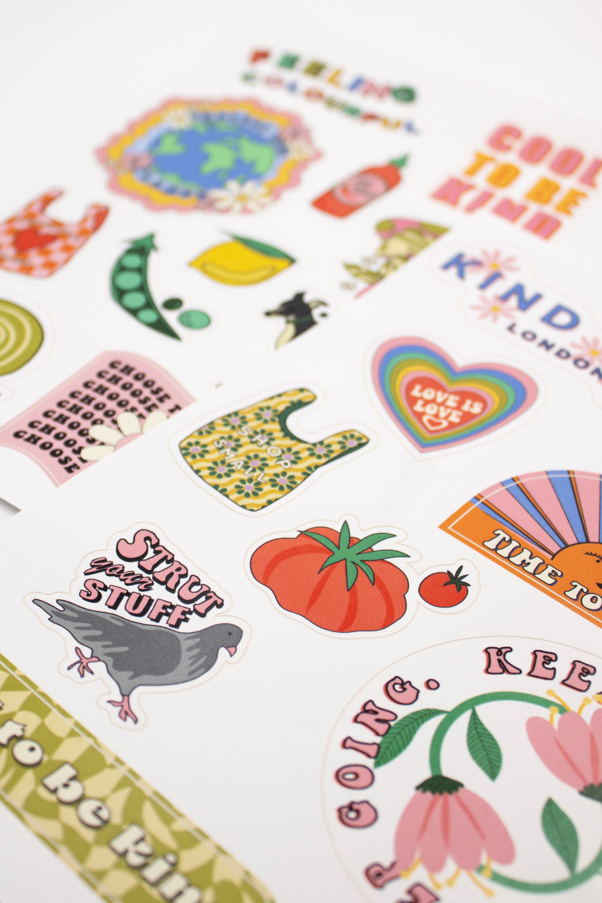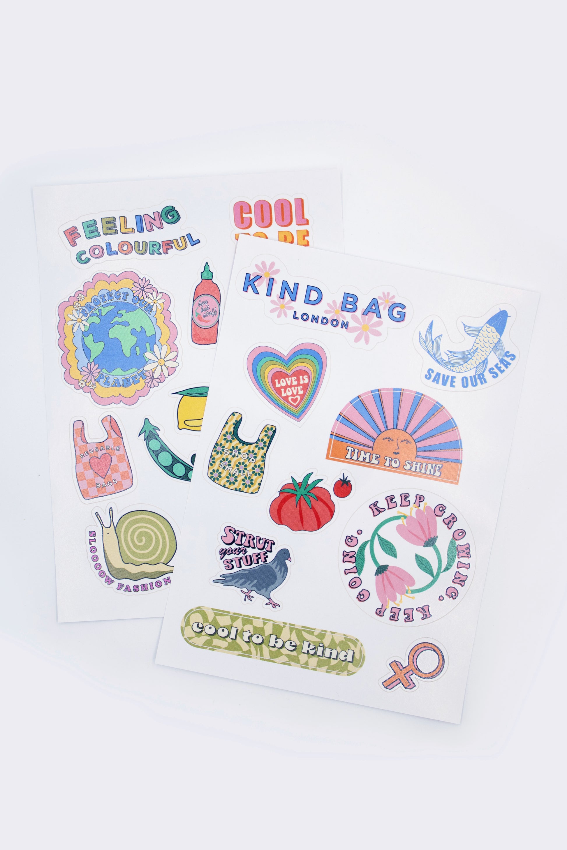 Original Kind Bag sticker sheets featuring 21 designs perfect for decorating your laptop, note book or phone case!